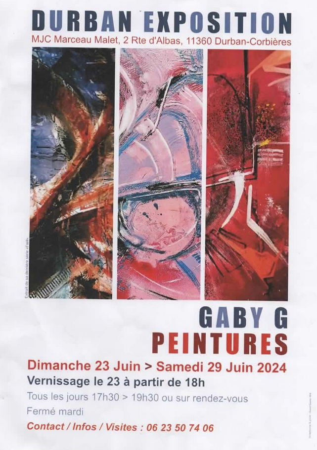 MJCExposition GABY G PEINTURE - - - - - - - du dimanche 23 juin au samedi 29 juin 2024 Vernissage le 23 juin à partir de 18h