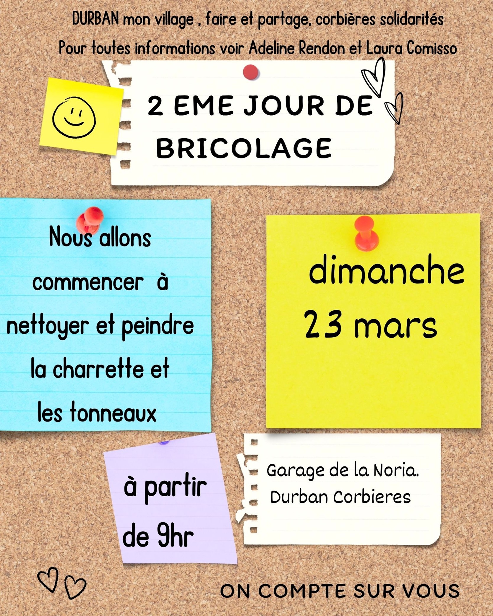 DURBAN MON VILLAGE - FAIRE ET PARTAGE - CORBIERES SOLIDARITES Vous donnent Rendez-vous dimanche 23 mars à 9 h au garage de la Noria, pour commencer à nettoyer et peindre la charrette et les tonneaux.