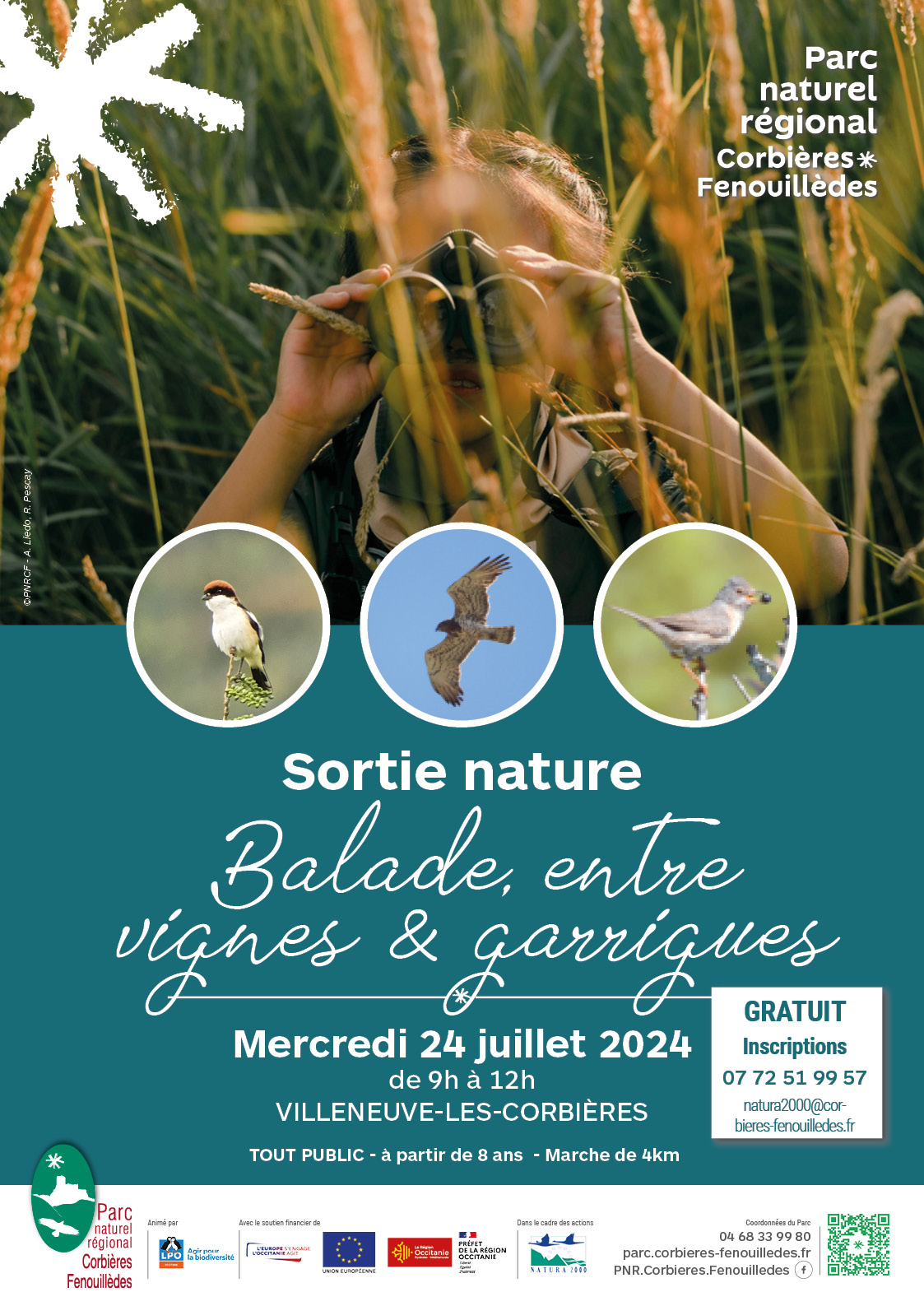 PARC NATUREL RÉGIONAL - - - - - - - Dans le cadre de son programme d'animations "Parc-ci,Parc-là" une balade naturaliste est programmée mercredi 24 juillet de 9h à 12h à VILLENEUVE LES CORBIÈRES.